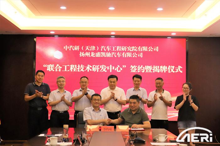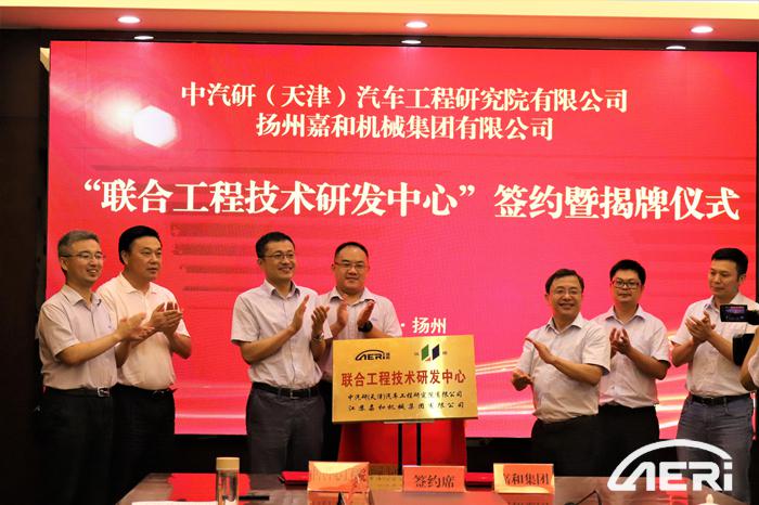 2020年7月16日,中汽研(天津)汽車工程研究院有限公司(以下簡稱“工程院”)黨委書記、院長高繼東、院長助理田涌君、第七開發部主任朱仲文一行赴揚州高郵市汽車科創園調研交流,并分別與江蘇嘉和機械集團、揚州龍盛凱馳汽車有限公司兩家園區內的企業簽署戰略合作協議,成立“聯合工程技術研發中心”。