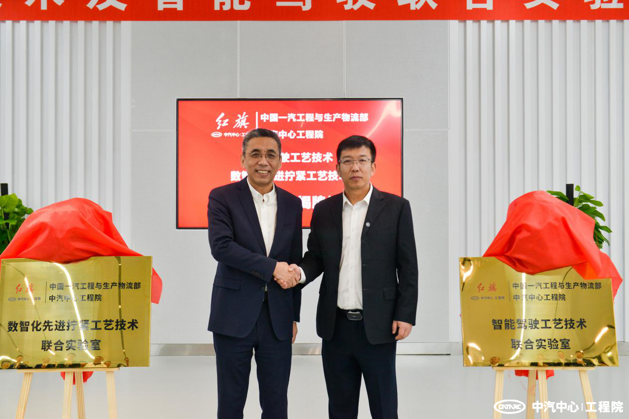 10月29日,中汽中心工程院與一汽集團工程與生產(chǎn)物流部在紅旗繁榮工廠舉行了總裝智能駕駛工藝技術(shù)及數(shù)智化擰緊工藝技術(shù)聯(lián)合實驗室揭牌儀式。中汽中心工程院總經(jīng)理王建海、一汽集團工程與生產(chǎn)物流部總經(jīng)理畢文權(quán)等領(lǐng)導(dǎo)出席儀式并為聯(lián)合實驗室揭牌。