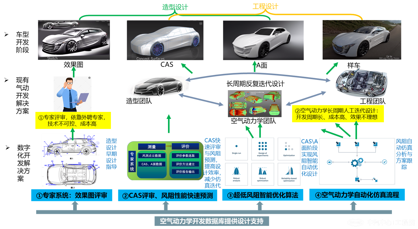 中汽中心工程院風洞團隊可為行業提供集虛擬仿真、風洞測試于一體的空氣動力學開發服務,為汽車企業超低風阻設計提供高效、低成本及高質量的數字化解決方案。