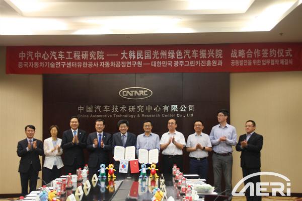 2019年5月30日,中國汽車技術研究中心有限公司(以下簡稱“中汽中心”)汽車工程研究院(以下簡稱“工程院”)與韓國光州綠色汽車振興院達成戰略合作,將圍繞新能源汽車的研發驗證和性能開發展開合作。中汽中心黨委書記、董事長、總經理于凱,工程院院長高繼東,副院長胡濟民,韓國光州廣域市市長李庸燮,議員金容集,光州綠色汽車振興院院長裴丁贊等領導出席會議,共同見證簽約儀式。(徐進爭)