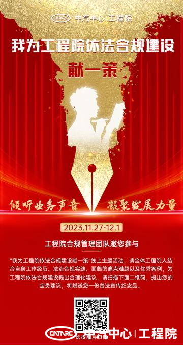 為深入學(xué)習(xí)宣傳習(xí)近平法治思想,進(jìn)一步弘揚(yáng)憲法精神,維護(hù)憲法權(quán)威,堅定憲法自信,在憲法宣傳周即將到來之際,工程院(11月27日-12月1日)組織開展“弘揚(yáng)憲法精神、依法合規(guī)治企”系列活動,推動憲法宣傳教育和依法合規(guī)治企在工程院走深走實。