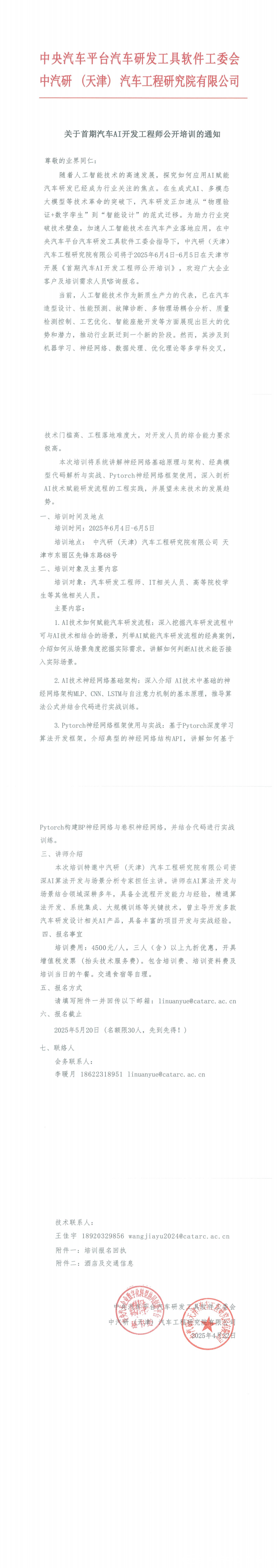 關(guān)于舉辦首期汽車AI開發(fā)工程師公開培訓(xùn)的通知