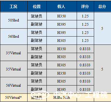 (1)試驗前不提供VTC數據或不滿足CP 500&CP 520技術公告要求,則只有2個主工況可根據主機廠提供的滑臺試驗進行評分。