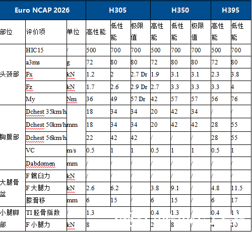 (3)增加95男性及05女性假人小腿傷害評價。