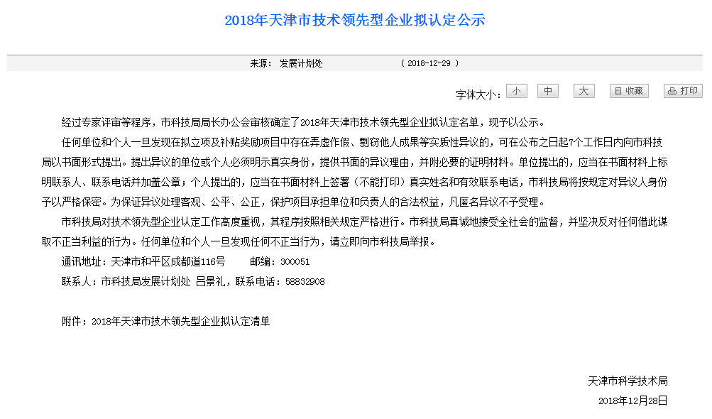 天津市技術領先型企業由天津市科學技術局負責認定管理,重點遴選屬于天津市重點發展的戰略性新興產業領域,主導技術在細分領域(行業)位居全國前3位的企業。