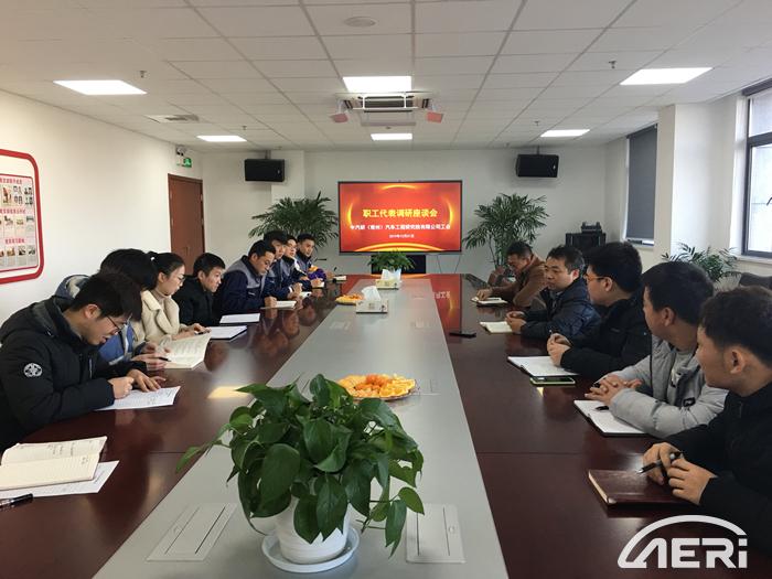 為深入了解員工的生活和工作,切切實實解決實際問題,2019年12月31日,中汽研(常州)汽車工程研究院有限公司(以下簡稱“常州院”)工會組織開展了職工代表調研座談會,會議由常州院工會主席易愛斌同志主持,大家就生活和工作中遇到的問題暢所欲言,積極交流,尋求改進策略。