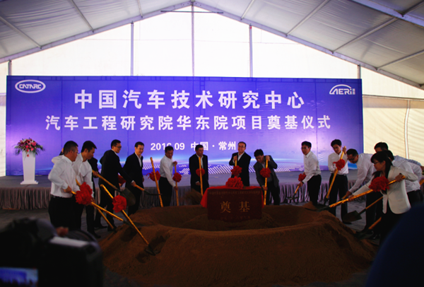 2016年9月29日上午,坐落在江蘇省常州市武進國家高新區的中國汽車技術研究中心(中汽中心)汽車工程研究院(工程院)華東院項目奠基儀式圓滿禮成。常州市市委書記閻立,常州市市委常委、市委秘書長蔡駿,常州市人民政府副市長、中共武進區委書記、武進國家高新區黨工委書記史志軍,中國汽車技術研究中心黨委書記于凱,中國汽車技術研究中心汽車工程研究院院長高繼東,中國汽車技術研究中心機械工業部汽車工業天津規劃設計研究院院長金濤等領導同志出席了奠基儀式。車和家信息技術有限責任公司總裁沈亞楠,車和家信息技術有限責任公司總工程師馬東輝,蕪湖凱翼汽車有限公司總經理助理、研究院院長盧禮華,江蘇金壇汽車工業有限公司總工程師劉強,華霆動力技術有限公司總裁周鵬等企業嘉賓應邀參加。奠基儀式由中共武進區委常委、武進國家高新區黨工委副書記、管委會副主任石旭涌主持。