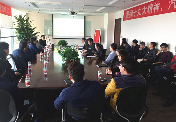 2017年12月19日,汽車工程研究院黨總支第三黨支部走進第四開發部宣講黨的十九大報告精神,會議由黨支部委員牟連嵩同志主持,第四開發部共計27名黨員和員工代表參加會議。
