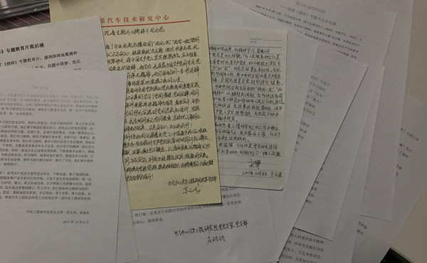 第一黨支部黨員將自己觀看《榜樣》的感受和認知以書面的形式記錄下來,紛紛向組織遞交了《榜樣》的學習感想。汽車工程研究院黨總支書記高繼東在感想中寫到:“在工作中,我們要始終以榜樣為標桿,牢記初心、立即出發,自覺、堅定、勇敢地擔負職責,牢記使命,勇于變革、勇于創新,永不僵化、永不停滯。從我做起,帶領汽車工程研究院全體員工為實現世界一流汽車工程研發機構的目標定位奮勇前進”。正是工程院員工的這種目標追求和實干精神,不斷推動全院向前發展。這樣的肺腑之言,在其他黨員的字里行間也深情流露。