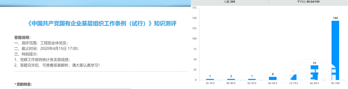 專題學習后,院黨委以線上答題測評的形式,組織黨員進行了考試考核。通過邊學邊測、以學促做,確保了每一名黨員都學深悟透,切實增強貫徹執行《條例》的能力。