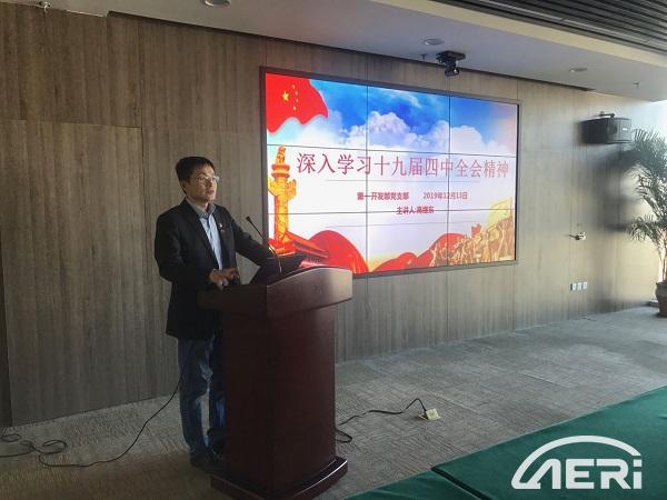 為進一步學習貫徹落實黨的十九屆四中全會精神,2019年12月13日下午,工程院黨委書記高繼東同志走進第一開發部黨支部,宣講黨的十九屆四中全會精神,對堅持和完善中國特色社會主義制度、推進國家治理體系和治理能力現代化問題進行深入解讀,全體在津黨員同志參加。
